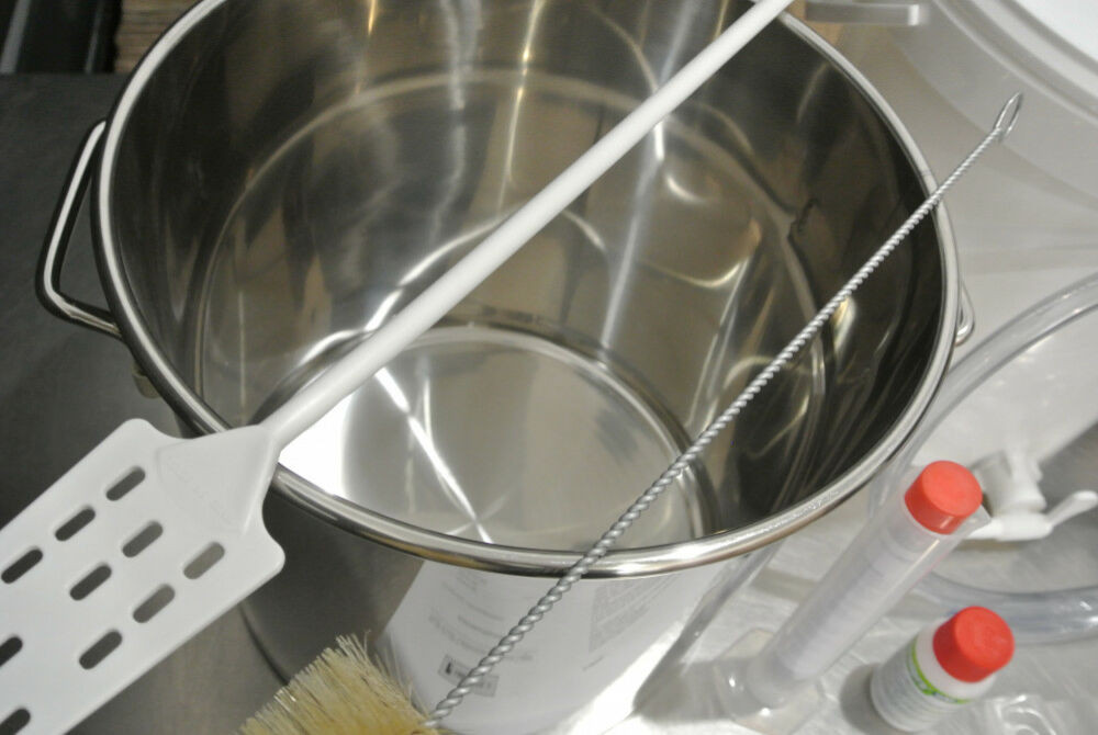 Egy egyszerű és az alapok elsajátításához tökéletesen elegendő sörfőző kit ez, ami könnyen tárolható, bármilyen kis konyhában használható, és 30 üveg (15 liter) sör elkészítésére alkalmas.
